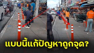 วิจารณ์สนั่น!!แก้ปัญหาแบบนี้เหมาะสมแล้วหรือ!! ปักเสาล้มลุกแบ่งทางเท้าให้มีทางเดิน