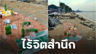 จวกยับ!! แก๊งขึ้เมา ดื่มเหล้า-เบียร์ริมหาดทิ้งขยะเกลื่อน ไร้จิตสำนึก