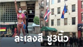 ชู 3 นิ้วที่นิวยอร์ก ละเลงสีบนร่างกายการแสดงเชิงสัญลักษณ์ที่กำลังเป็นอยู่ในเมืองไทย