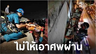 กู้ภัย แชร์ภาพเคลื่อนย้ายศพแบบทุลักทุเล โรยตัวจากชั้นดาดฟ้า เหตุ เจ้าของไม่ให้เอาศพผ่านลงมา