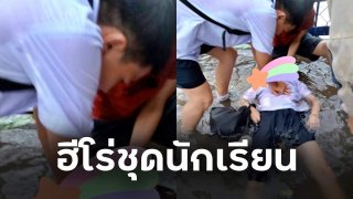 "ฮีโร่ชุดนักเรียน" เดินทางกลับบ้าน พบเหตุเด็กนักเรียนหญิงจมน้ำ เข้าช่วยปั้มหัวใจ
