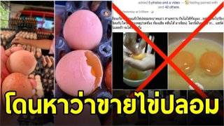 แม่ค้าเดือดร้อนจากข่าวลือไข่ปลอม ที่สื่อบ้านเราเอามาประโคมบ่อยๆ จนลูกค้าเชื่อเถียงกับแม่ค้า จนขายไม่ออก