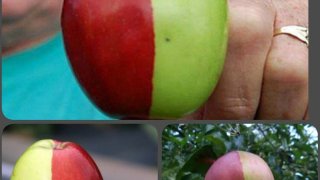 ฮือฮาพบแอปเปิ้ลสองสี มีฝั่งละสี แดง-เขียวในลูกเดียว แอปเปิ้ลกลายพันธุ์แปลกๆ