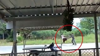 หนุ่มทะเลาะกับพ่อคลั่ง ขโมยมอเตอร์ไซค์ตำรวจหนี ตำรวจเข้าระงับเหตุถูกไม้หน้า 3 ฟาดสลบคาที่ คลิป
