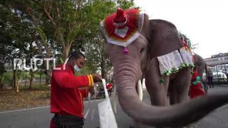 ประเทศไทย: ช้าง "ซานต้า" นำมาสก์มอบให้เด็กนักเรียนในโครงการสร้างความตระหนักรู้เกี่ยวกับโควิด