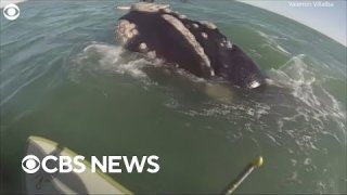 วาฬ 12 ตัวล้อมรอบนักเล่นกระดานโต้คลื่น ชาวอาร์เจนตินา