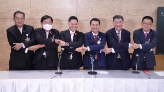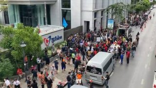 ม็อบบุกเยือนพรรคภูมิใจไทยและเพื่อไทยค้านตั้งรัฐบาลกับ 2 พรรคลุง