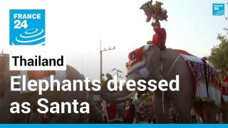 PETA วิจารณ์ช้างแต่งตัวเป็นซานต้าส่งของขวัญให้เด็กๆ ในประเทศไทย