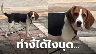 หมาน้อยทำหน้าตาละห้อยใส่ เมื่อเจ้าของขับรถทับข้าวข้าวซะแบน