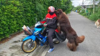 อมยิ้มไปกับภาพหมาใหญ่ที่อ้อนพี่บุรุษไปรษณีย์กัน