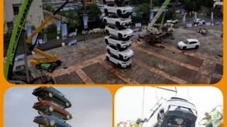 เมื่อผู้ผลิตรถ EV จีน รถไฟฟ้าจีนโชว์ซ้อนรถ 7 คัน เพื่อสาธิตความทนทานของตัวถัง