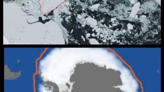 น้ำแข็งในทะเลแอนตาร์กติกา (ขั้วโลกใต้) ลดต่ำลงมากกว่า 2.6 ล้านตารางกิโลมตร ซึ่งใกล้เคียงพื้นที่ 5 เท่าของประเทศไทย