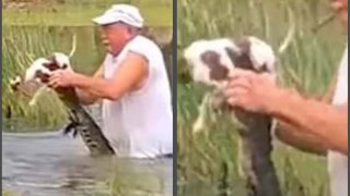 เหตุการณ์ระทึกเมื่อชายชราชาวฟลอริดาต่อสู้ง้างปากจระเข้ ช่วยลูกสุนัขจากขากรรไกรของจระเข้ที่งับลูกสุนัข จนรอดปลอดภัย