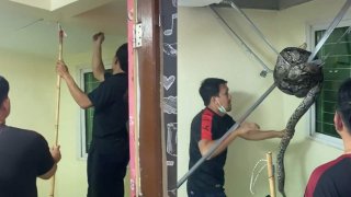 สาวถึงกับผงะ!เมื่อเจองูยักษ์ ตกลงมาจากฝ้าในบ้าน