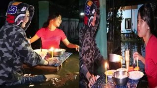 หนึ่งปีมีครั้งหนึ่ง!คู่รักหนุ่มสาวดินเนอร์กลางน้ำท่วม