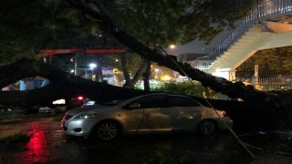 เกิดอุบัติเหตุต้นไม้ริมรั้วจุฬาฯ โค่นทับรถเก่ง คนขับหวิดดับ