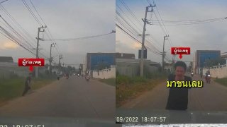 ใจหล่นไปถึงตาตุ่ม!หนุ่มกระโดดตัดหน้ารถ ยกมือไหว้ให้รถชน