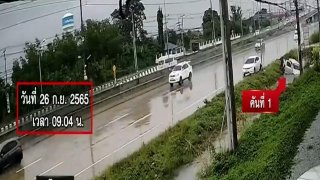 จุดเดียว100กว่าคัน ฝนตกถนนลื่น รถเสียหลักลงคูน้ำ