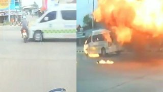 สลด!รถพยาบาลขับฝ่าไฟแดง ชนรถจักรยานยนต์ระเบิด