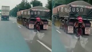 วิจารณ์ยับ! นักปั่นจักรยาน ขับจี้ตูดรถบรรทุกท้ามฤตยู "รักสุขภาพแต่ไม่รักตัวเอง"