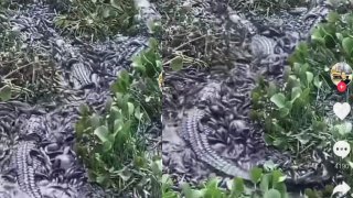 จะลงไปเอายังไงละทีนี้! เมื่อหนุ่มสูบน้ำเพื่อจับปลา แต่มีจระเข้แถมมาตั้ง3ตัว