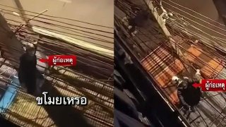 โจรแอบตัดสายสื่อสาร ถูกถ่ายคลิปเป็นหลักฐาน กระโดดหนีแทบไม่ทัน