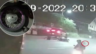 อุทาหรณ์!จยย.ล้อหลุด เสียหลักพุ่งชน กระบะกลางถนน