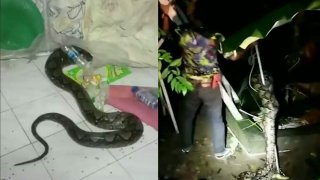 มันมากับน้ำท่วม!เจ้าของบ้านแทบช็อก เจองูเหลือมหนีน้ำท่วมเข้าบ้าน กินแมวไปหนึ่งตัว ก่อนจะมาแอบซุกข้างที่นอน