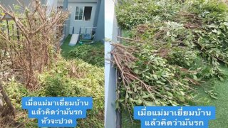 สาวหัวจะปวด ปลูกต้นไทรเกาหลีริมรั้วบ้านหวังบังสายตา ตกเย็นกลับมาเจอแม่หวังดีกว่าตัดทิ้งเกลี้ยง