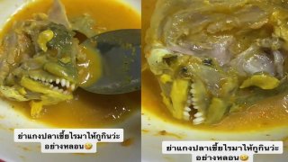 ไวรัลหลอน 2 ล้านวิว หนุ่มอวดแกงไตปลาฝีมือย่า กินเสร็จเพิ่งสังเกตน้องยิ้มแฉ่งเห็นฟันเรียงเป็นแผง เห็นแล้วหลอน ชาวเน็ตถาม อย่าบอกนะว่า ปิรันย่า