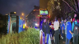 หวิดสูญเสีย!เกิดอุบัติเหตุ รถบัสพานักเรียนไปทัศนศึกษาพลิกคว่ำ นักเรียนเจ็บระนาว