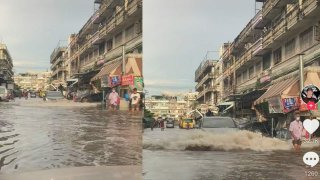ดราม่าสนั่น!รถเก๋งขับฝ่าน้ำท่วมมาด้วยความเร็ว จนทำให้น้ำกระเด็นไปโดนคุณลุงจนเซเกือบล้ม