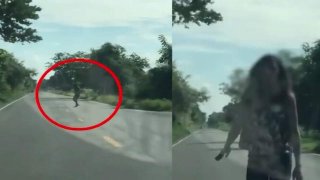 หักหลบแทบไม่ทัน!เมื่อสาวกระโดดขอเงินกลางถนน