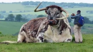 "English Longhorn" วัวที่มีขนาดใหญ่กว่าตัวคน