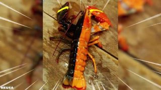 สัตว์แปลกหายาก! กุ้งล็อบสเตอร์2สี