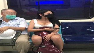 มองทั้งขบวน! สาวนักเล่นผีผา แบกเครื่องดนตรีใหญ่ขึ้นรถไฟฟ้า