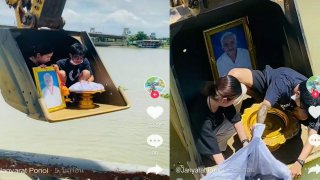 นั่งรถแบ็คโฮ ลอยอังคารคุณย่าสุดที่รัก
