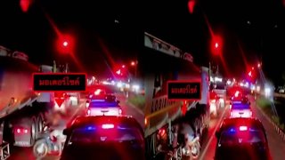 วิจารณ์ยับ!หนุ่มขับรถมอเตอร์ไซค์ลอดใต้ท้องรถส่งน้ำมัน