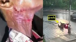 คอหวิดขาด!คุณลุงขับวินจยย.ถูกสายส่งสัญญาณโทรศัพท์ เกี่ยวคอจนรถล้ม