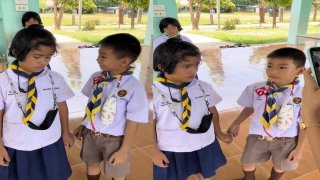 หนูน้อยน่ารัก ไม่อยากไปเรียน เพราะกลัวเพื่อนจับแก้ม