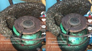 จะจุดต่อหรือถอยดี!เมื่อคุณจะทำกับข้าว แต่ดันเจอรังพึ่งอยู่ที่เตาแก๊ส