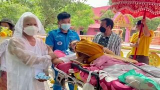 อบอุ่นหัวใจ! กู้ภัยนำพ่อป่วยติดเตียง ร่วมแห่งานบวชลูกชาย