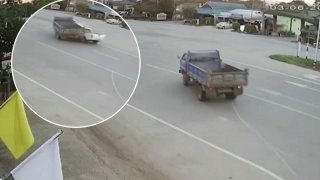 นาทีระทึก! รถกระบะพุ่งชน รถหกล้อที่กลับรถตัดหน้า จนเครื่องหลุด