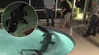 สะพรึง! จระเข้ยักษ์บุกสระน้ำในบ้าน