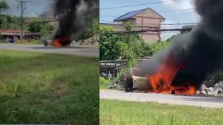 สุดช้ำ! เอารถไปซ้อมที่อู่ ขับออกมาได้แค่ 10 เมตร เกิดไฟลุกท่วมจนเหลือแต่ซาก