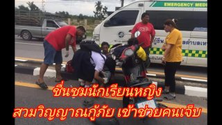 ชื่นชมนักเรียนหญิง มีน้ำใจสวมวิญญาณกู้ภัย เข้าช่วยชายบาดเจ็บจากอุบัติเหตุ