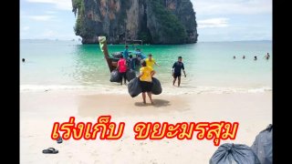 จนท.อช.ทางทะเล เร่งเก็บขยะหลังลอยมากับกระแสคลื่นพัดเข้าแหล่งท่องเที่ยว