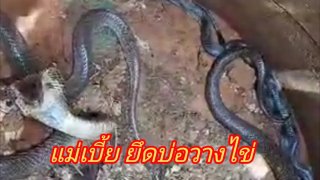 ผงะ คู่รักงูเห่ายึดบ่อเกรอะทำรังวางไข่ใกล้ศาลงูจงอาง