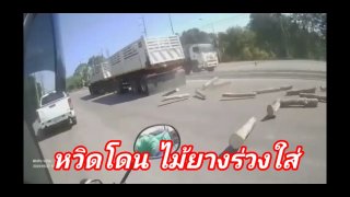 ท่อนไม้ยางพาราร่วงจากรถพ่วง 18 ล้อ เกลื่อนถนน