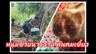 หนุ่มกระบี่ใจดี เข้าช่วย นางอาย หรือลิงลม รอดจากคมเขี้ยวสุนัข